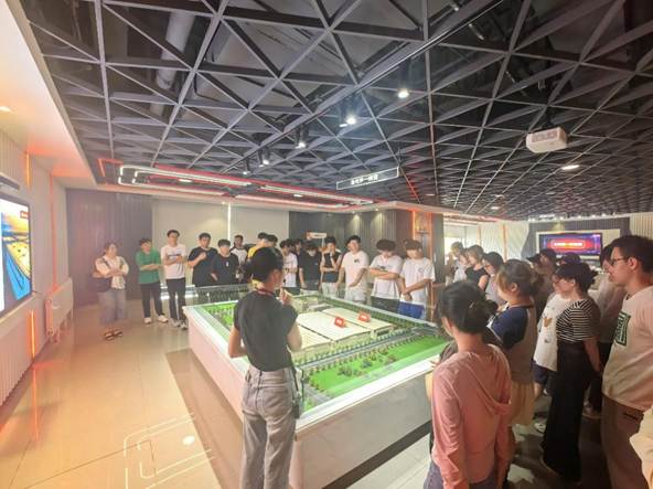 在讲解员的引导下,师生们参观了物流园区的仓库沙盘、绿色物流示范区及智能分拣区,并近距离观摩了“天狼系统”的运作过程,接触了大型物流无人机、AGV等先进物流装备。参观过程中,同学们对仓储派送流程及新物流装备在“次日达”服务中的技术支持表现出浓厚兴趣,并就此展开讨论。